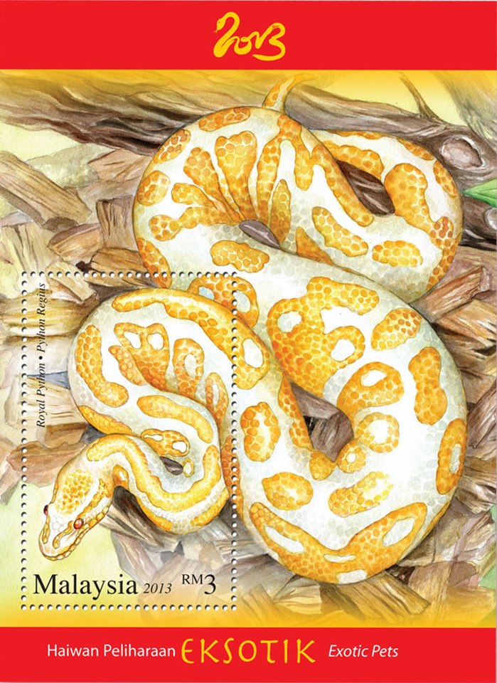 Pos Malaysia will issue Exotic Pets to coincide with the Year of the Snake. The issue will comprise of (images rights are with Pos Malaysia and subjected to changes):