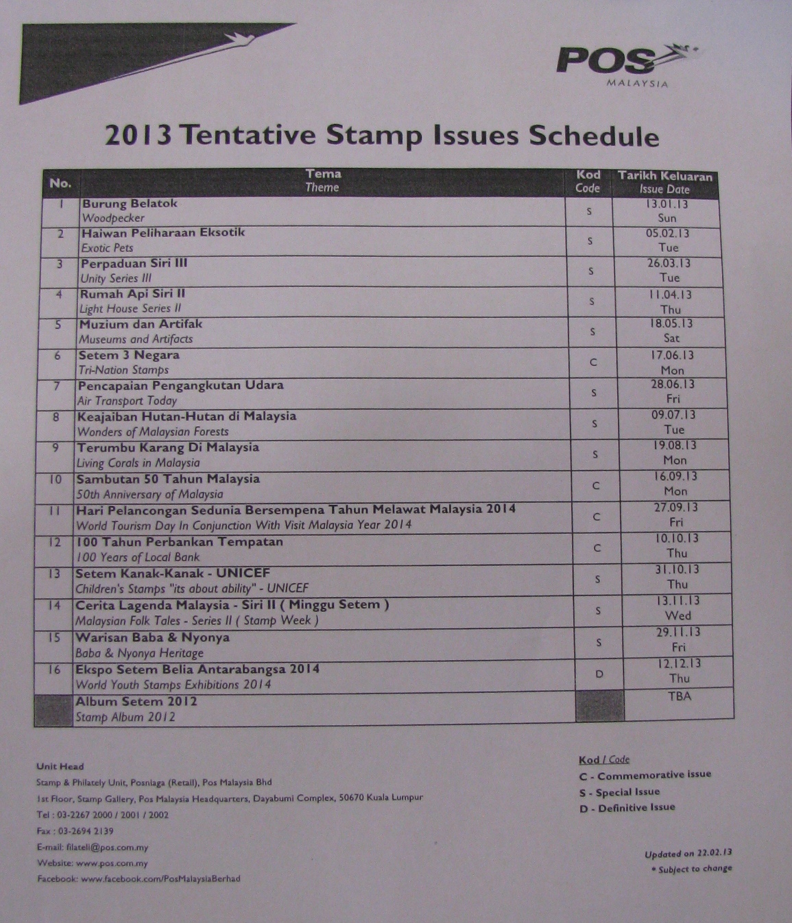 Here is the latest revision (22 February 2013) of the Malaysia Stamp Programme. It is quite a significant change.