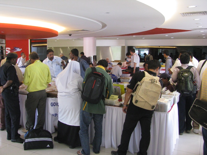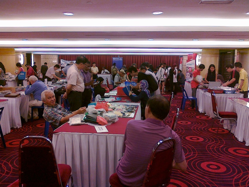 I suppose the highlight today is the auction. There were quite a few items attracting heavy bidder, notably the Year 2000 Year of the Dragon large sheet. Singapore Post packed up yesterday, so their table is empty. The designers did not turn up, so if you really want to collect a full set of signed covers, I have some of the best collection after these few days of exhibition. Here is a FDC with both designer’s signatures! Super rare! Most other have one and not the other. Sadly no more Singapore stamp. Grab it quick, I made very few. http://www.ebay.com.my/itm/2-sign-Special-Tri-nation-3rd-Stamp-Exhibition-First-Day-Cover-FDC-Malaysia-2013-/360726391499?pt=LH_DefaultDomain_207&hash=item53fcf7eacb