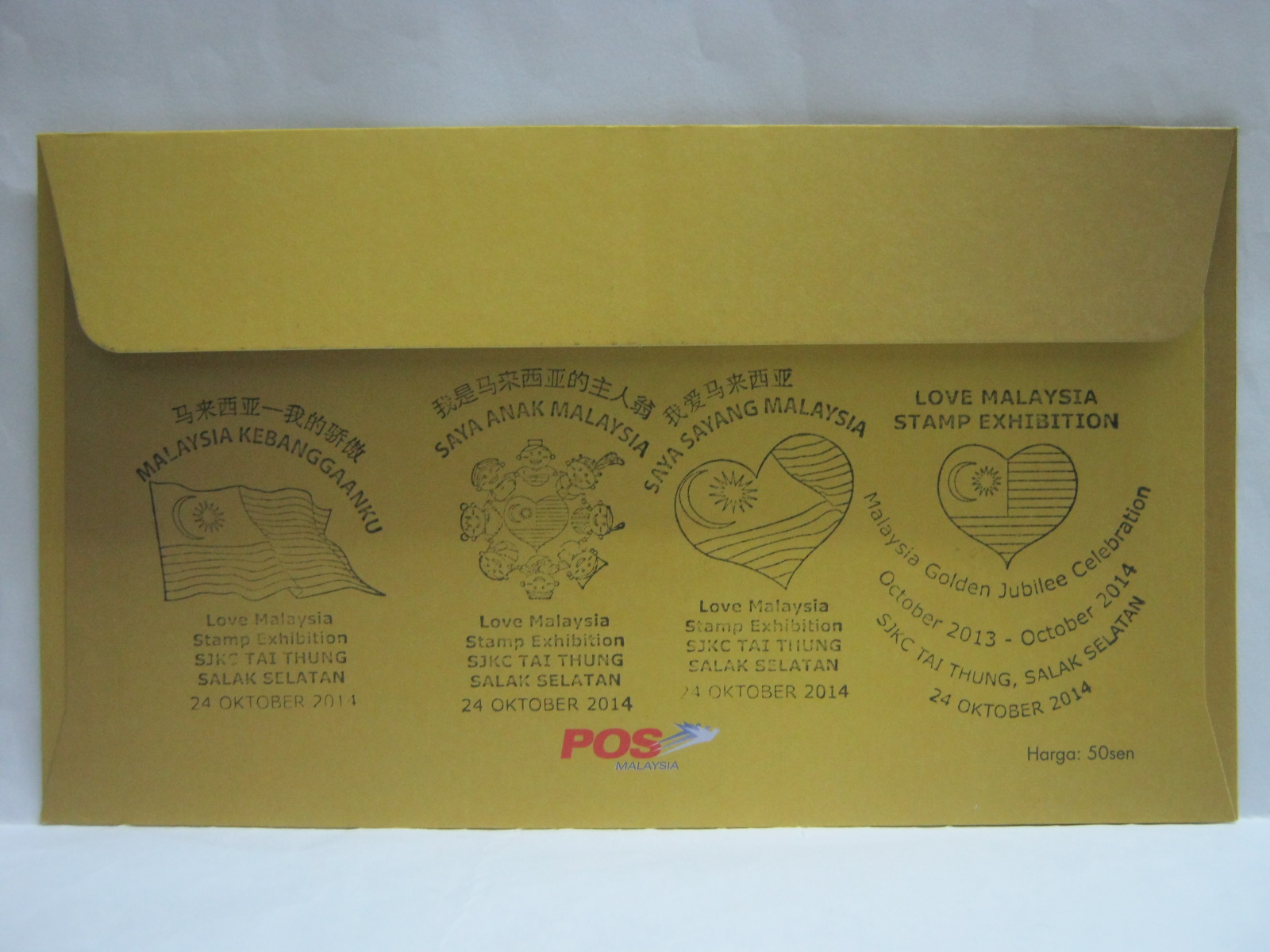 Well, the never ending last minute announcement “Love Malaysia Stamp Exhibition” is back! This time it will be held for a day at SJK (C) Tai Thung in Salak South (Salak Selatan) on 24 October 2014. There are a staggering 7 postmarks for a single day! I doubt anyone can top that many postmarks! Hmmm, trying to figure out how to chop, chop, chop… Bring huge envelope!