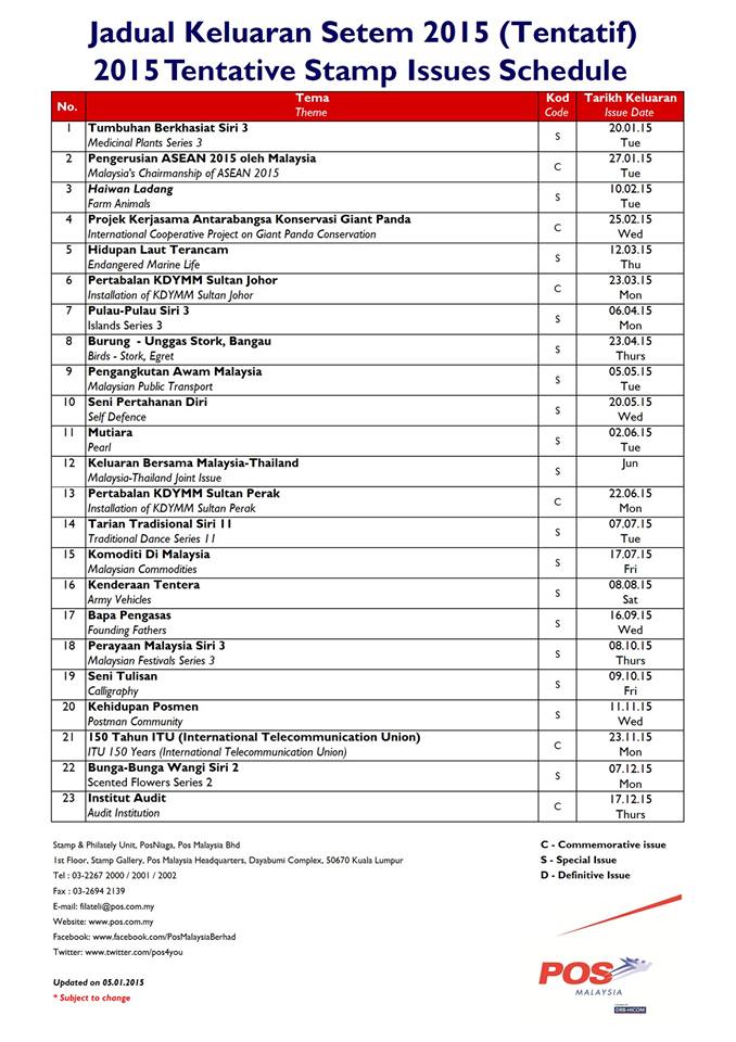 There will be some really super-expensive issues such as the Farm Animals (Year of the Goat) with a planned wooden stamps valid for postage and a hairy Panda! Both of these will be above the RM 5.00 benchmark. In fact it will probably beat Melaka 750 MS price!