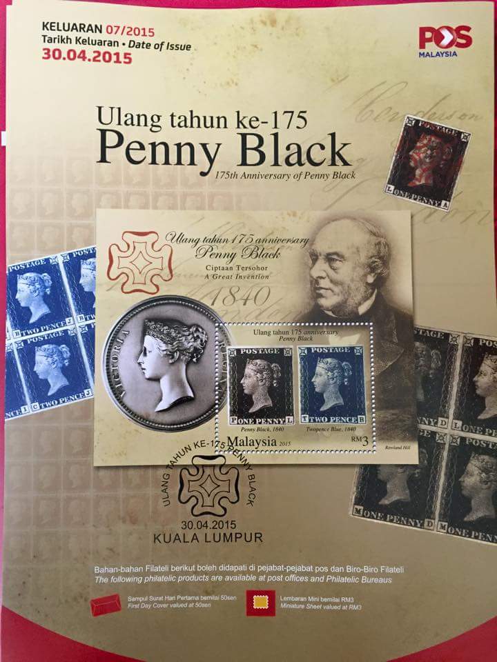 The next issue is the 175th Anniversary of Penny Black. It is postponed and will be issued on 30 April 2015 (latest information). It will be a single miniature sheet with a stamp on stamp design (something like the Day 2 WYSE MS). Face value RM 3.00.