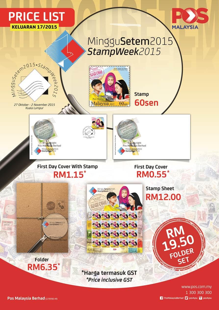 The upcoming Stamp Week 2015 will be held in the KL GPO from 27 October – 02 November 2015. This time the poster featured only a single 60 sen stamp. Here are the products.