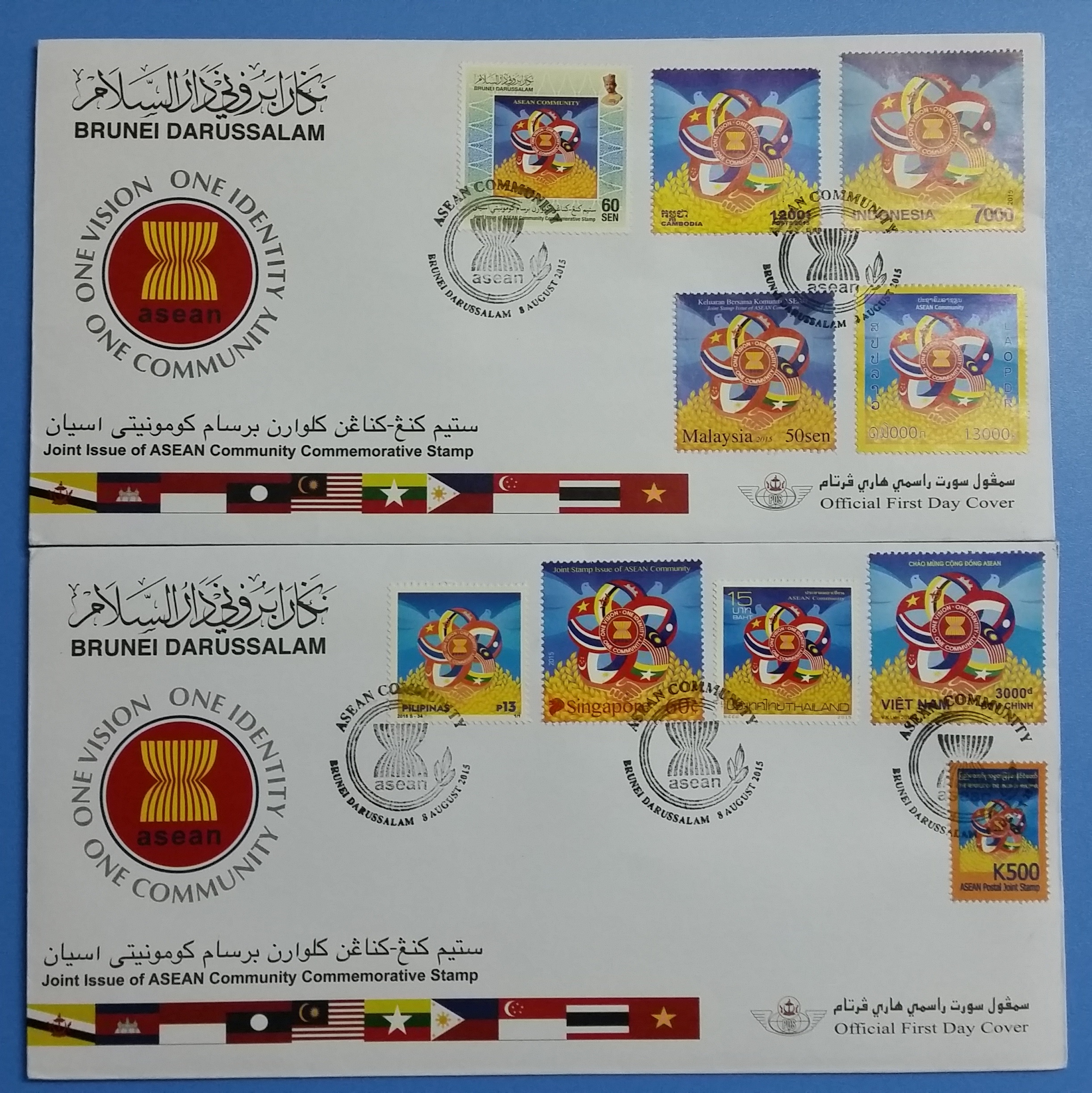 - Brunei – FDC, Sheet of 20 stamps, 10 nations pack, booklet, 10 nations on FDC using Brunei cancellation