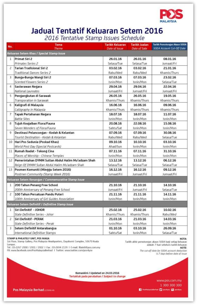 Look at National Laureates, Transportation in Sarawak and Calligraphy. Make sure you update your calendar.