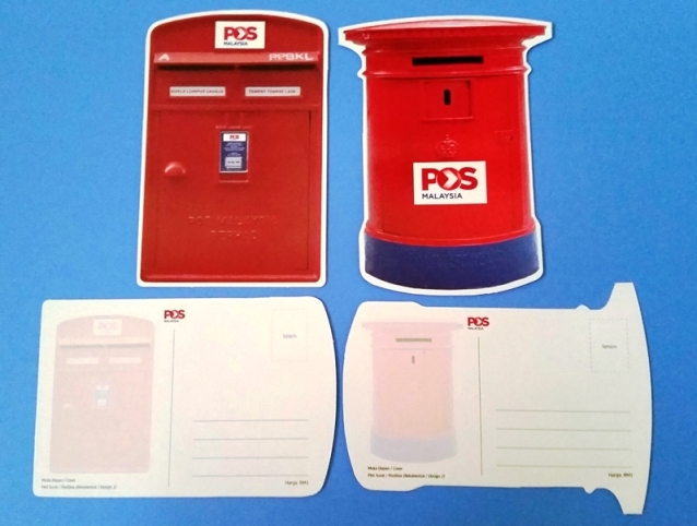 Recently Pos Malaysia released a set of 2 postcards in the shape of post boxes. The postcards were intended for the promotion of philately in schools.