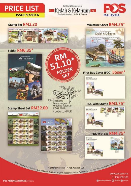 The last few days, the online search for Tourist Destinations stamp issue was quite high, mainly due to readers trying to reconfirm the date of issue. Based on the latest verbal confirmation from Pos Malaysia, the Tourist Destinations – Kedah and Kelantan issue will be postponed to 27 July 2016. Since the official announcement has not been released, do keep an eye out for any last minute changes.
