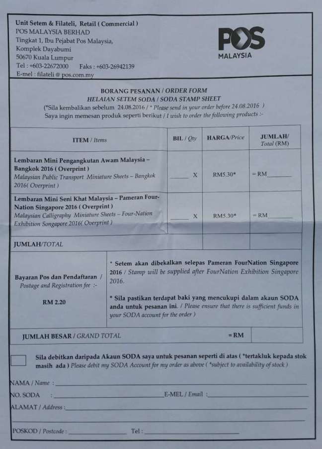 Pos Malaysia is really fast this time. The order form for the Thailand 2016 and even the Four Nations Exhibition in Singapore next month is available! Great job!