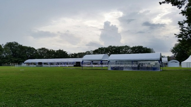The school was all spruced up. The tents for tomorrow night’s dinner are up.