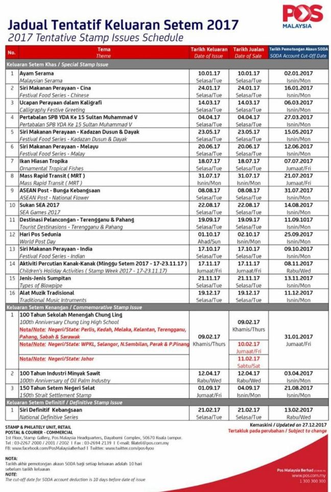 Here is a revision to the 2017 Malaysia Stamp Schedule: