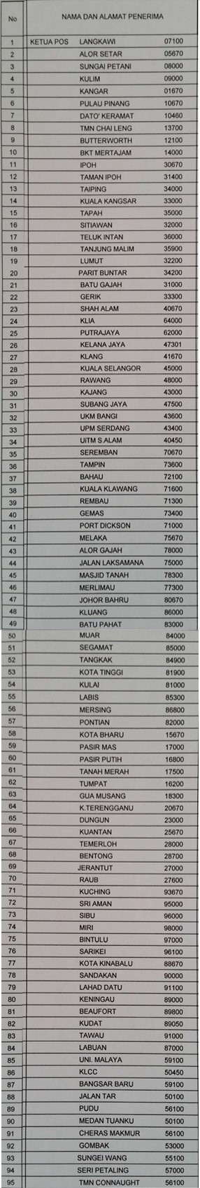 Here is the updated list of Philatelic Bureau branches. These branches will have the pictorial cancellation / chop. Please note this list was released by the Philatelic Bureau HQ in Kuala Lumpur in January 2107.