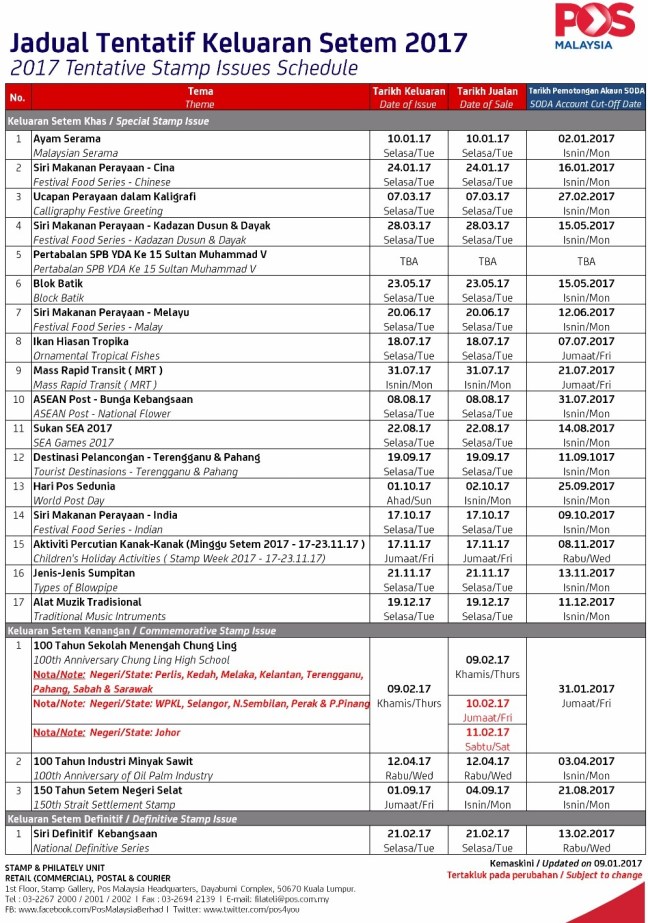 Here is the latest revision to the Malaysia Stamp Issue Schedule: