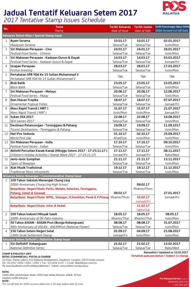 Here is the latest Malaysia Stamp Schedule. Time to update your diary again.