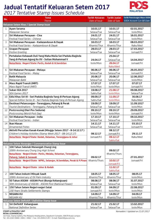 Here is the updated stamp schedule. Notable is the date for the YDPA Special Sheetlet (Series 3) on 11 September 2017.