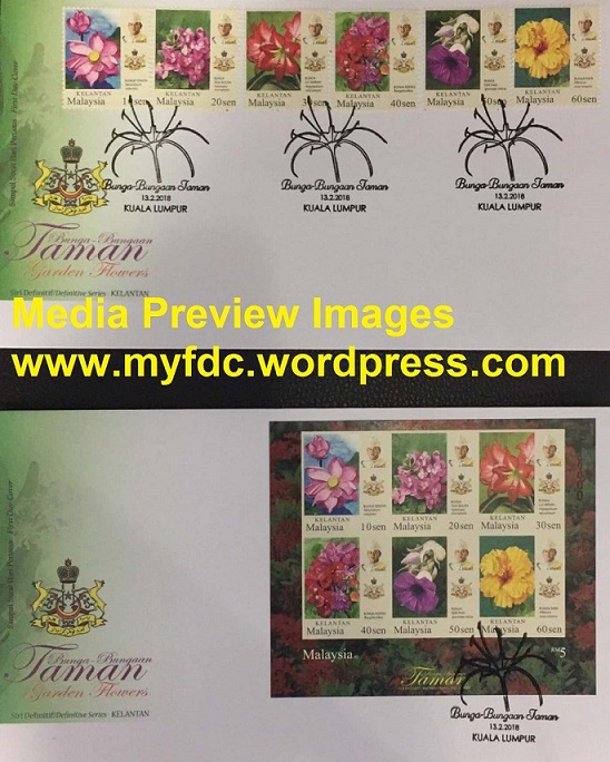 The next awaited issue is the Kelantan Garden Flowers Definitive. This will be released on 13 February 2018.