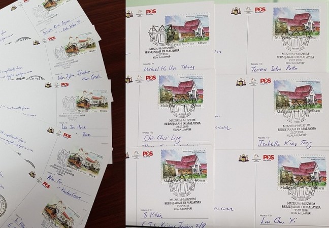- Perak Museum concordant postcard with a little extra cancellation: S Pillai, Alan Tan, Lee Joo Hock, Wan Izlina Ibrahim and Aishah Binti Azman.