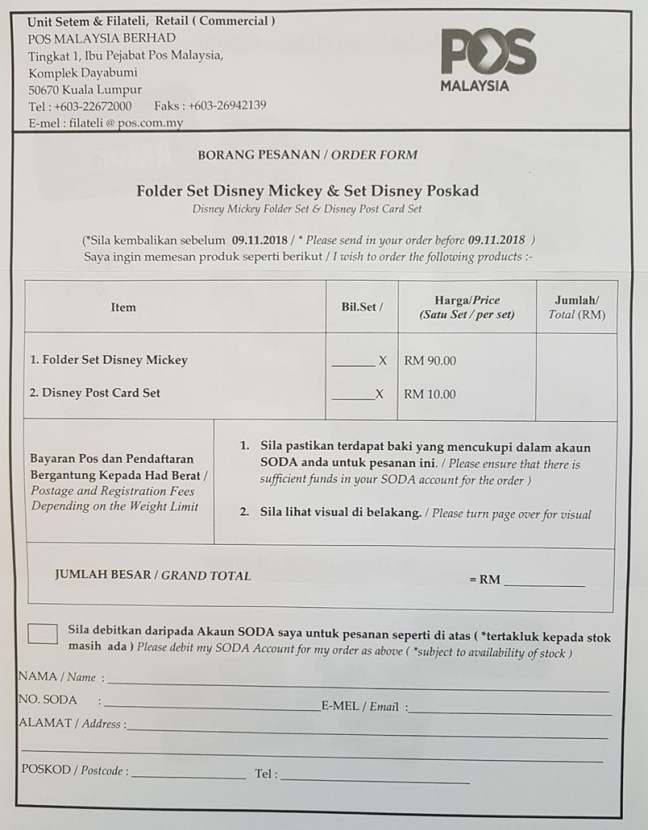 The stocks on eziemall was again replenished by late evening on 13 November 2018. However, the Pre-Stamped Postcards are sold out at the counters. The only last resort is the SODA order forms (refer above). You can just print and fax over the form if you are a SODA member.