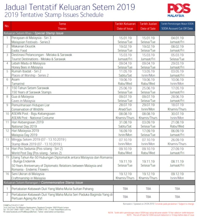 The schedule now shows the 150 Years of Sarawak Stamps. It should be an interesting issue. It seems that Combating Wildlife Cybercrime has changed to Conservation of Wildlife.