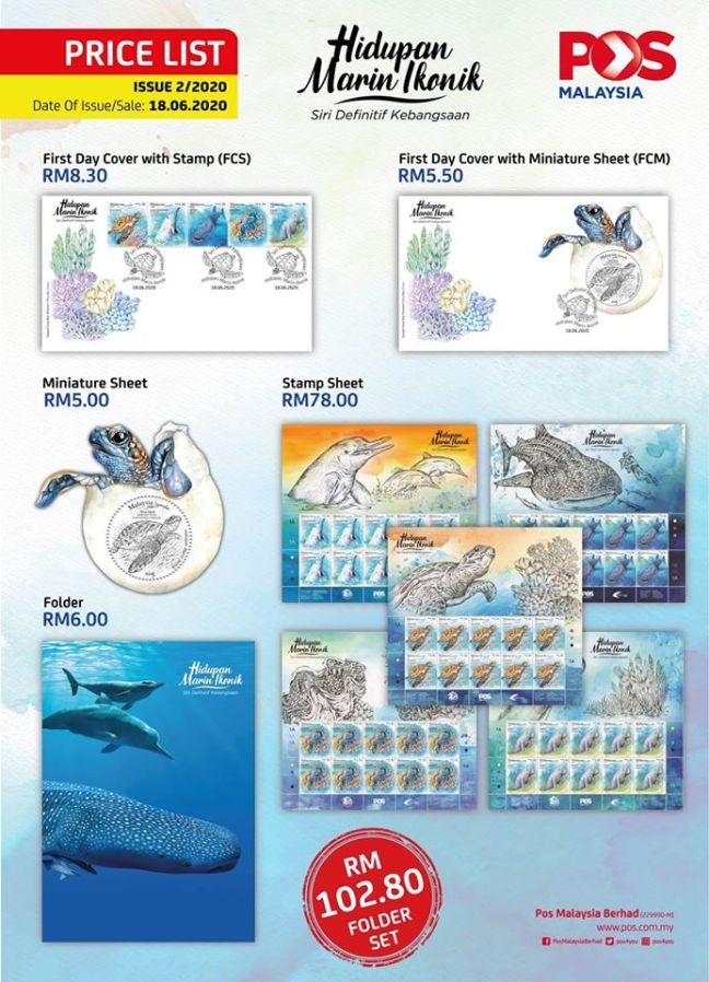 - RM 5.00 Miniature Sheet: Hawksbill Turtle (Penyu Karah) in a die cut and spot varnish effects