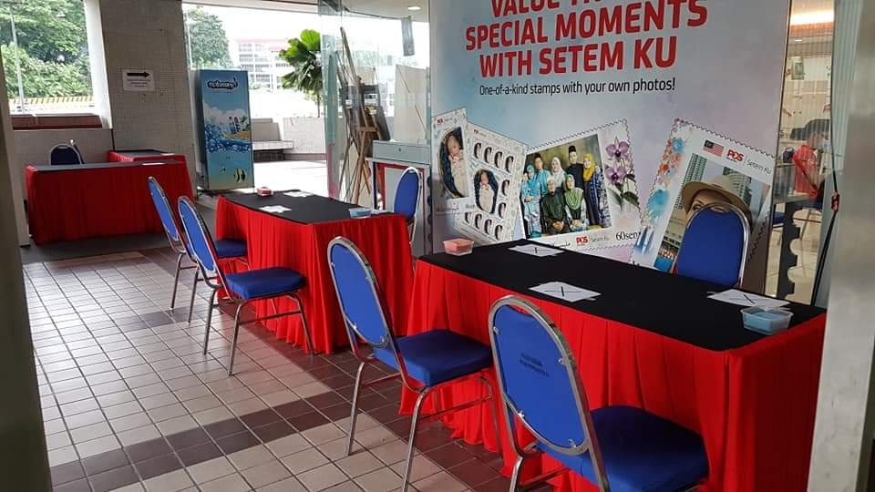 On exit are the desks to stick stamps and cancel them at the far end. This time, Pos Malaysia staff do not allow the collectors to cancel their own covers for hygiene reasons.