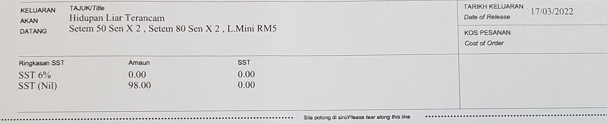 I suppose the folder will be available as well. I think we can prepare our budget first. Hopefully it will be a roaring Miniature Sheet just like previous year’s die cuts and special effects.