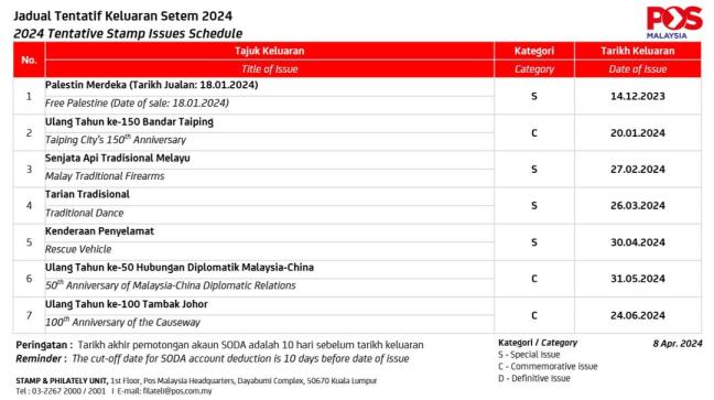 Ah, just a time timing on the dates from Pos Malaysia. Here is the latest updated Malaysia Stamp issue schedule programme.