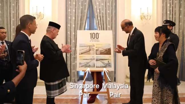 The 100th Anniversary of the Causeway stamps were unveiled yesterday (06 May 2024) by DYMM YDPA Sultan Ibrahim Sultan Iskandar and Singapore’s President Tharman Shanmugaratnam at the Istana. The design is a unique joint issue with each country showing their perspective of one of the busiest land crossing in the world! The stamps will be issued by Pos Malaysia and Singapore Post. The date released by Pos Malaysia is tentatively on 24 June 2024.