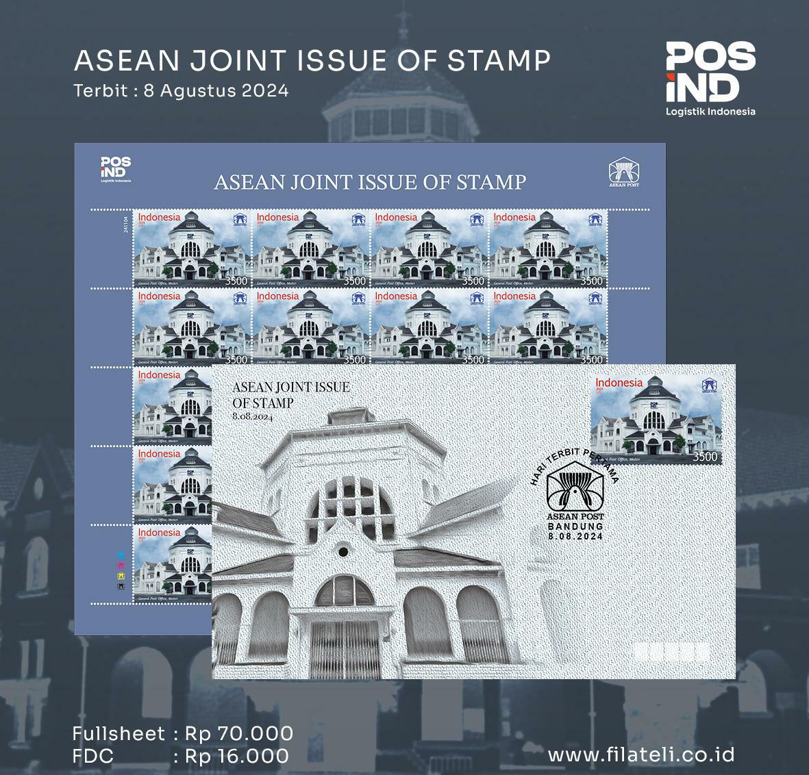The next issue will be another big joint theme issue. Each ASEAN country is expected to issue a single stamp (Laos as usual is expected to issue MS and imperf MS) on a General Post Office. Indonesia chose Medan General Post Office.