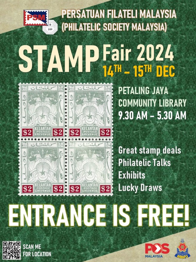 The 4th and last Philatelic Society Malaysia (PSM) Stamp Fair of 2024 will be held this weekend! Come and grab items you might have missed out.
