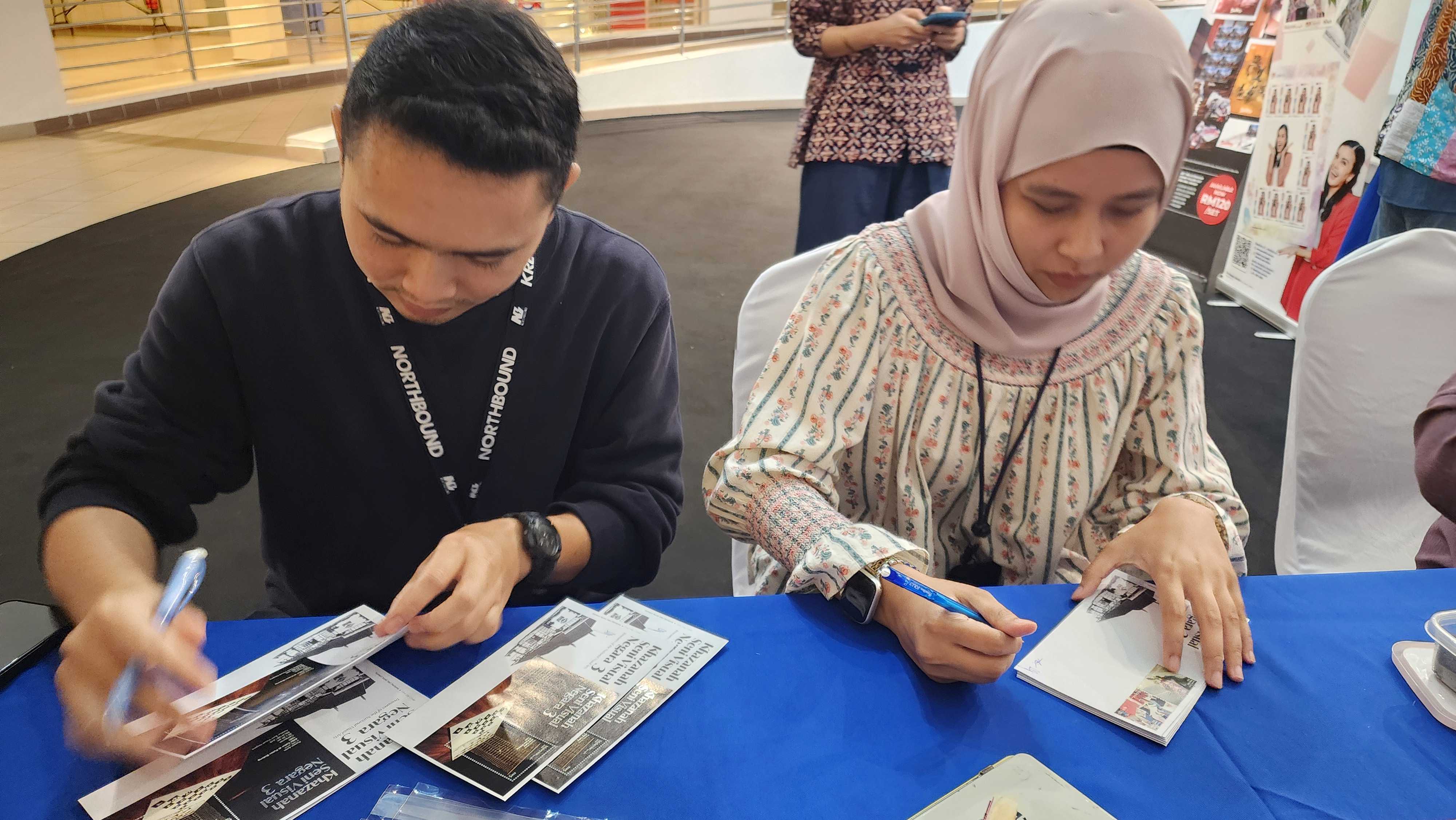 Ms Nadiah Mohd Fauzi and Mr Majmuddin bin Mohd Salleh, the Balai Seni Negara designers were at the Pos Malaysia’s booth. Well, all the collectors wasted no time in getting their autographs and posing for photos.