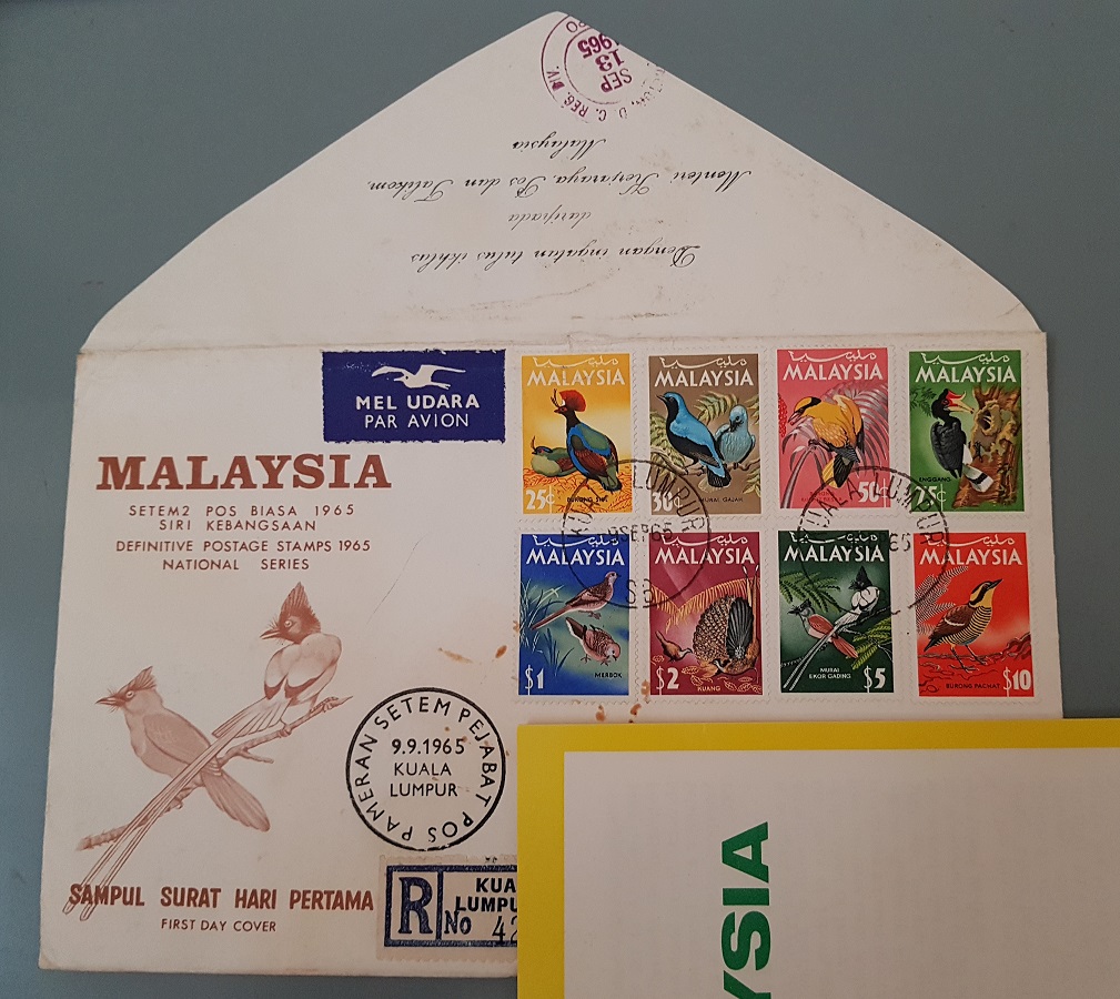 The Malaysian Postal Administration issued the first Complimentary First Day Cover (CFDC) from the onset of the Formation of Malaysia on 16 September 1963. In the early days, the CFDCs were sent to counterparts in foreign postal administrations, retired colonial officers and dignitaries. Some CFDCs were given to VIPs in the country and also given out during official stamp launch ceremonies. These are different than the stamp folders produced and sent to UPU for each stamp issue. Thus in the early days, it is really a VVIP FDC as it is almost impossible for a layman to get a copy. Somehow, some British Postal Officers managed to send to themselves.