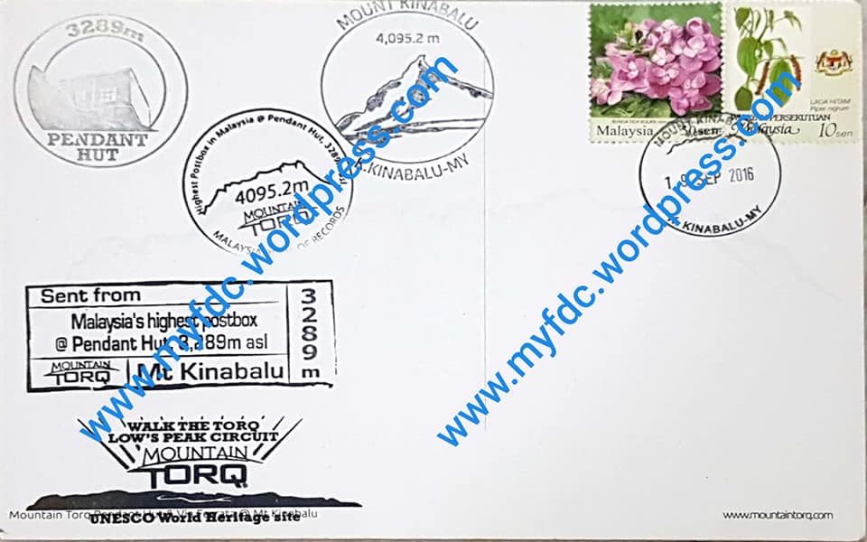 Here are the postcards with the Pendant Hut special postmark and cachet. The via ferrata reopened on 19 January 2019 after the earthquake that struck Ranau on 05 June 2015. The Mount Kinabalu via ferrata is the highest in the world!