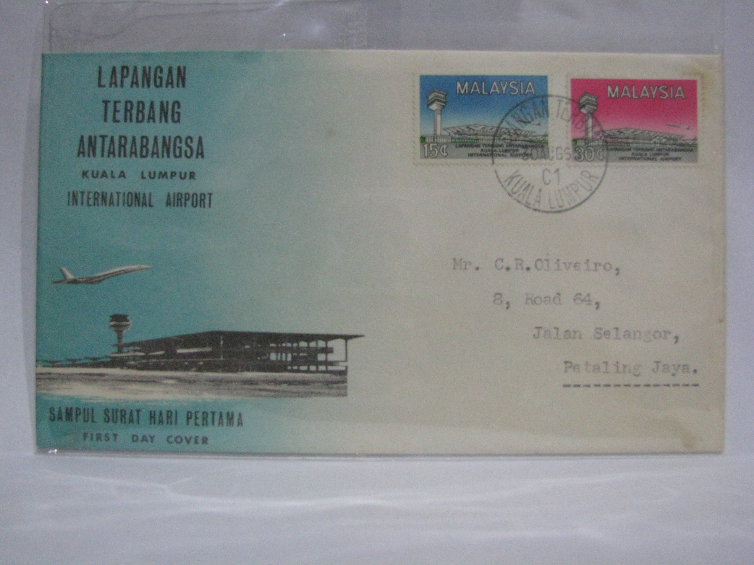 This FDC was sent via normal mail and cancelled with the Lapangan Terbang C1 cancellation.