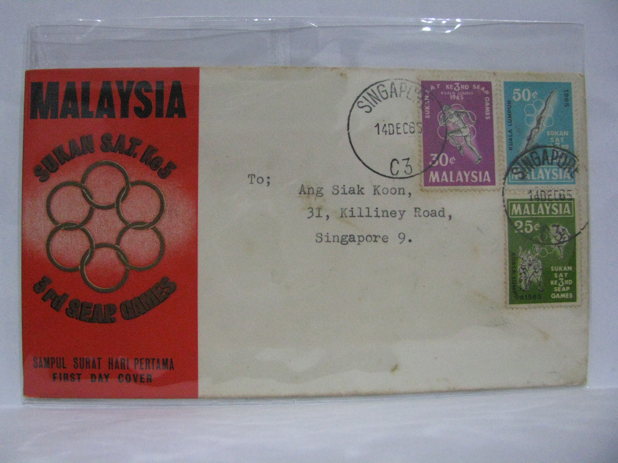 The 3rd SEAP Games was held in Kuala Lumpur, thus the cover carries the Kuala Lumpur cancellation.
