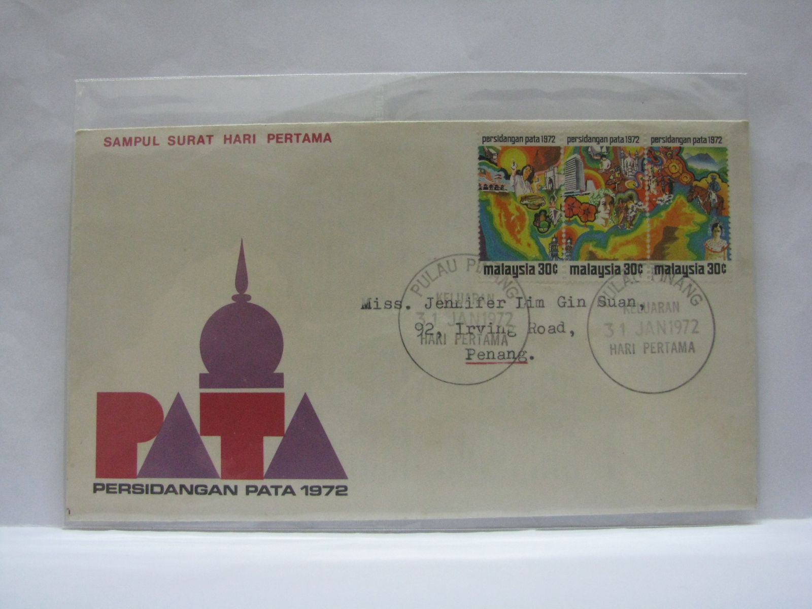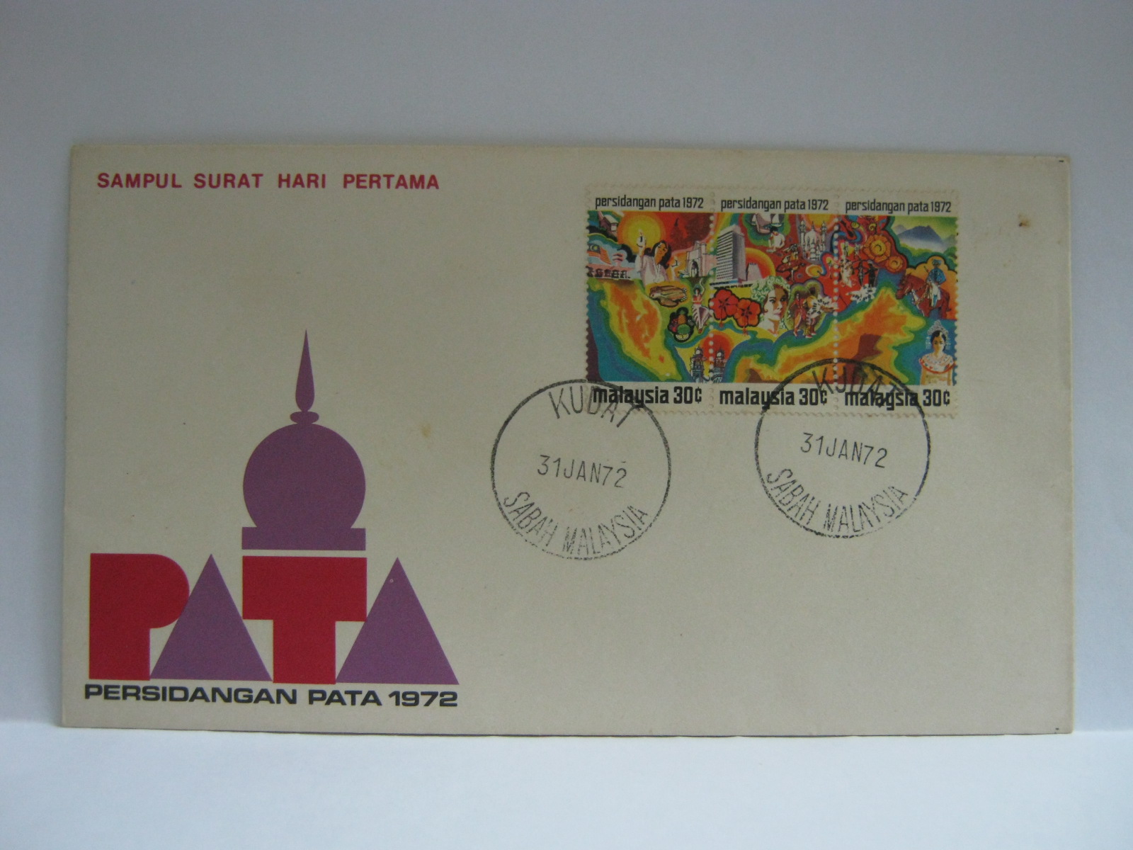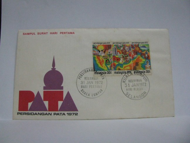 This FDC features the Kuala Lumpur cancellation and the Persidangan PATA cancellation. Kuala Lumpur was the host of the PATA Conference held from 31 January 1972 to 04 February 1972.