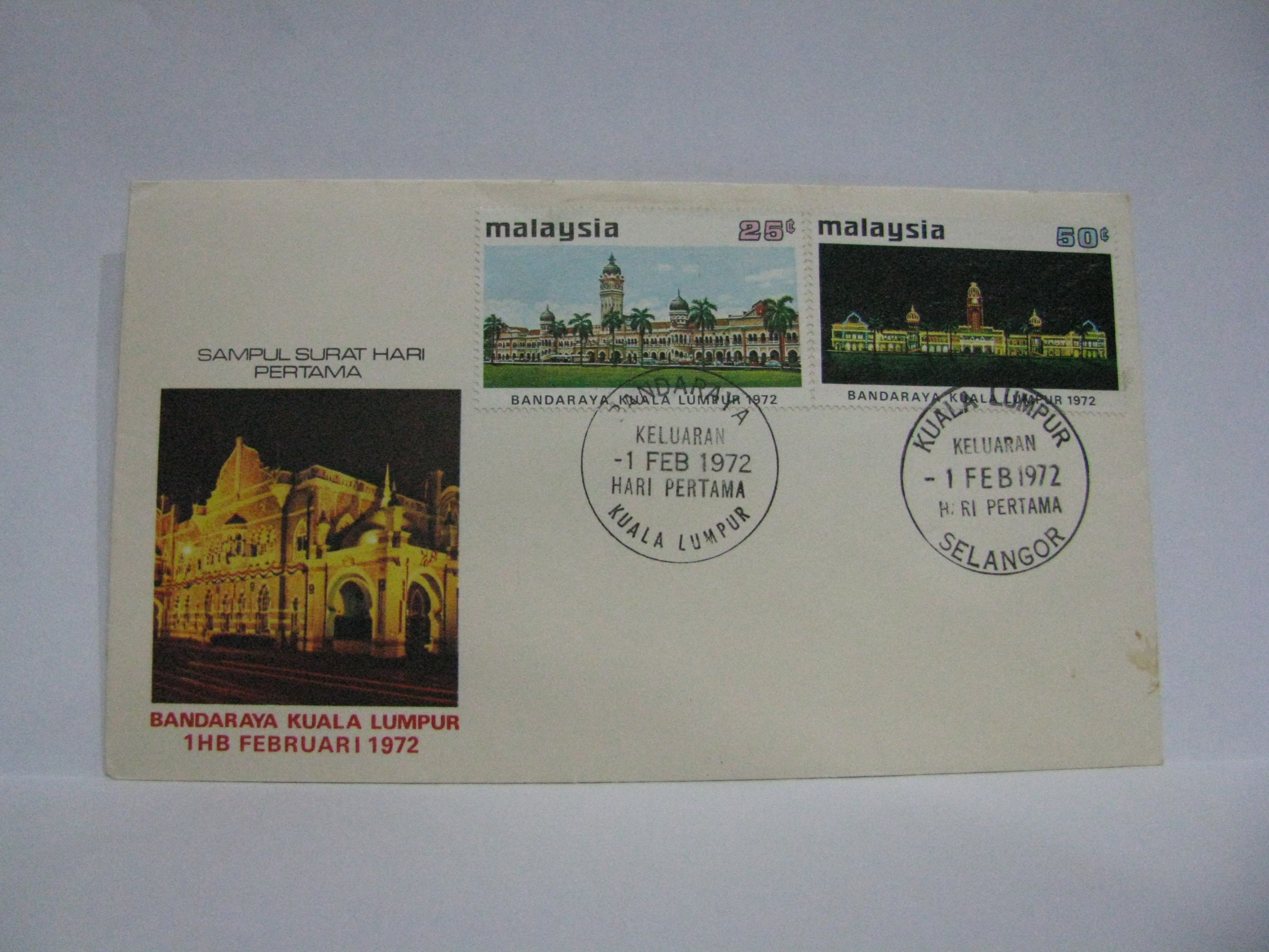 This FDC was cancelled with the Kuala Lumpur cancellation and a special Bandaraya Kuala Lumpur cancellation.