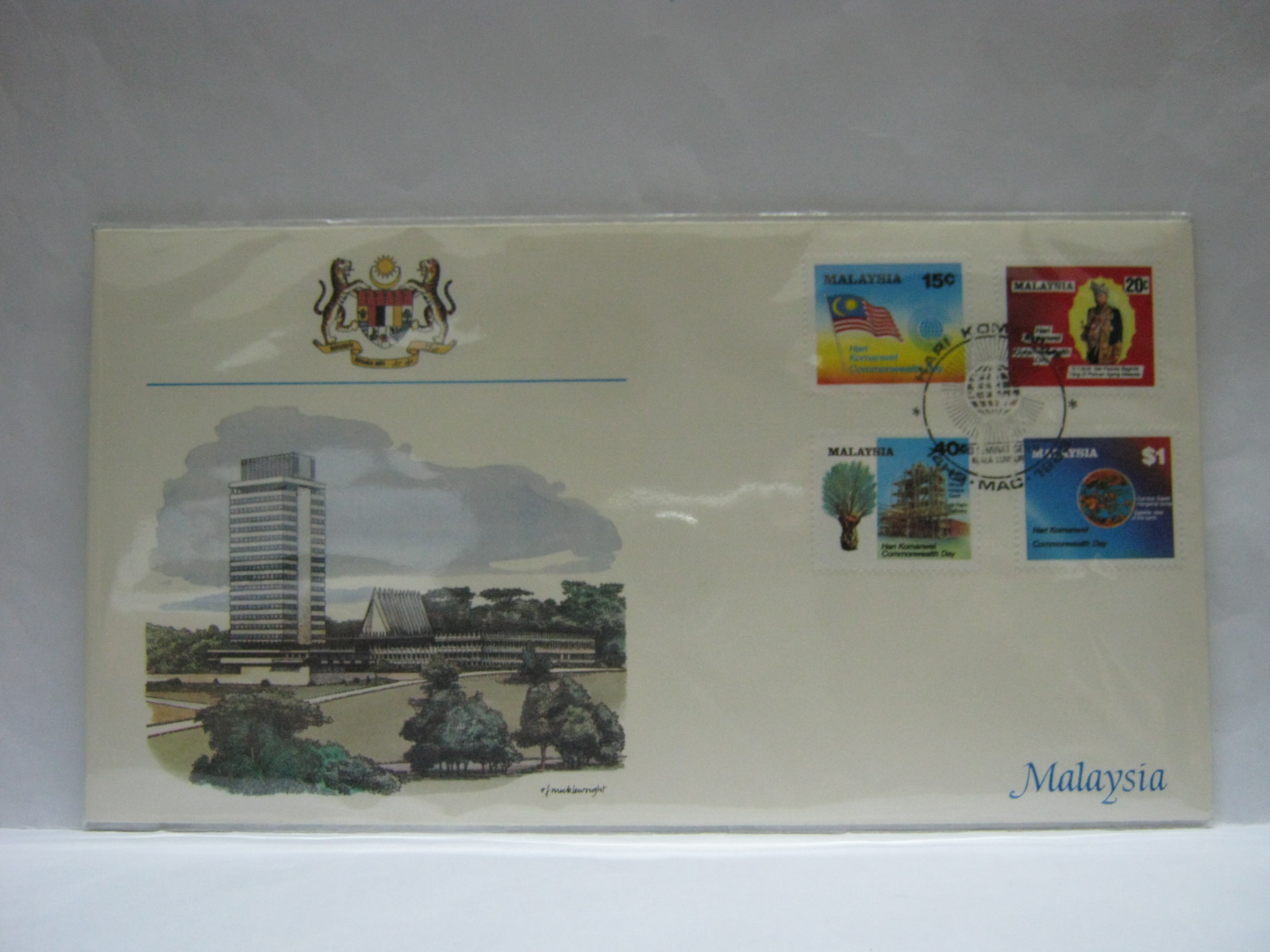 This FDC was issued as a worldwide collection on The History and Heritage of the Commonwealth and cancelled in Kuala Lumpur.