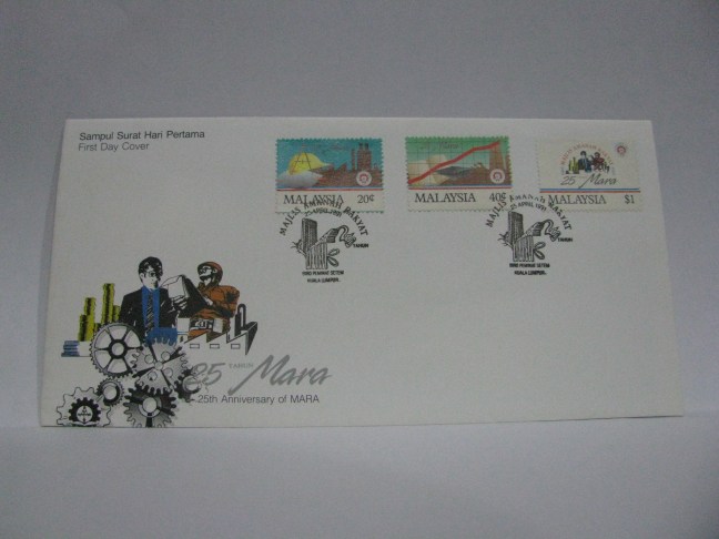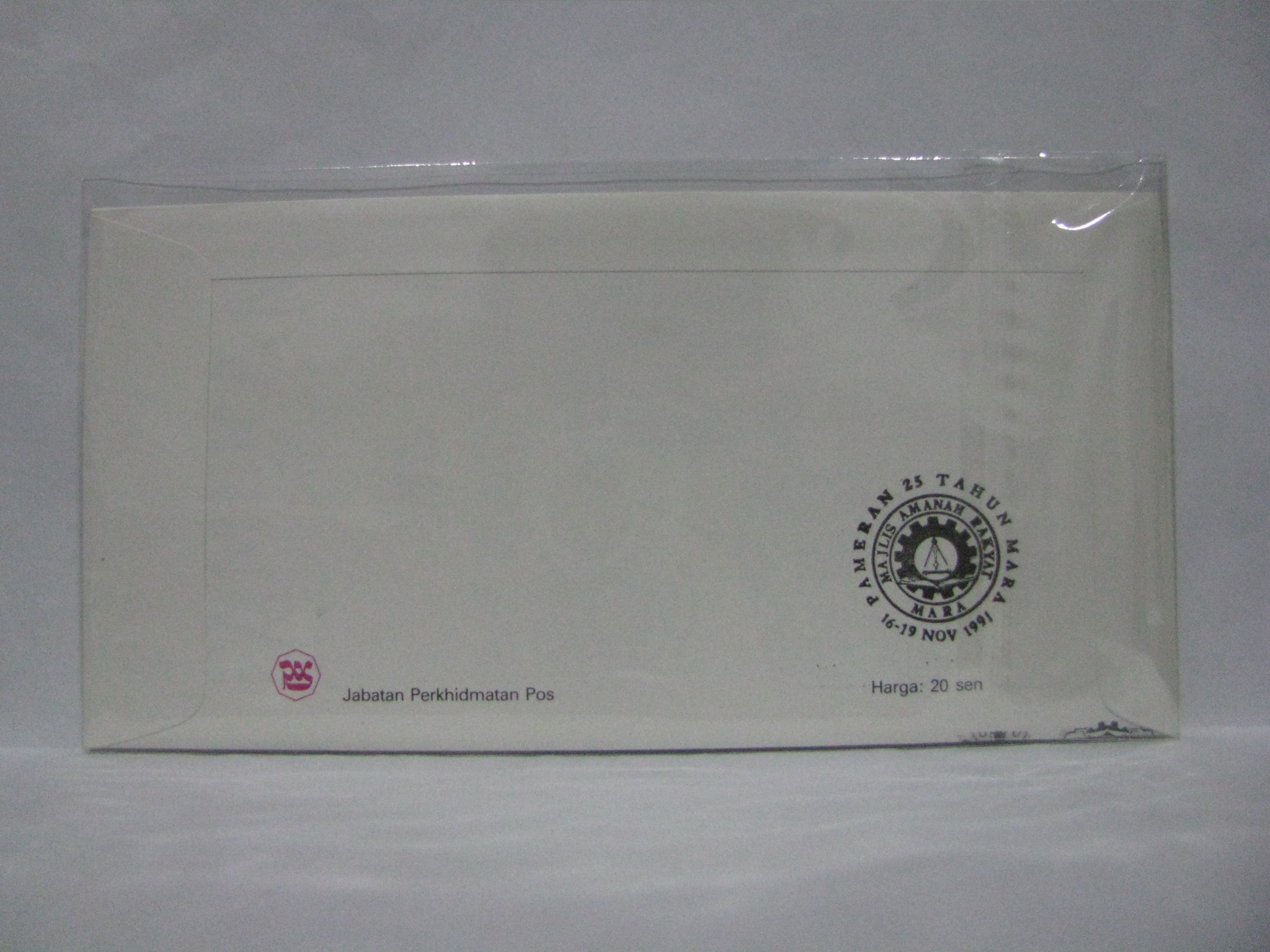 This FDC was cancelled in Jalan Tuanku Abdul Rahman (the post office opposite MARA Building) and signed by the 3 designers. On the back of the FDC is a cachet from the 25th Anniversary of MARA Exhibition which was held from 16 – 19 November 1991.