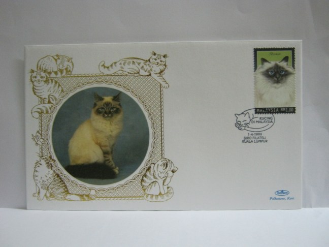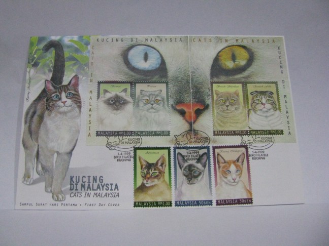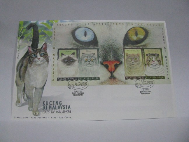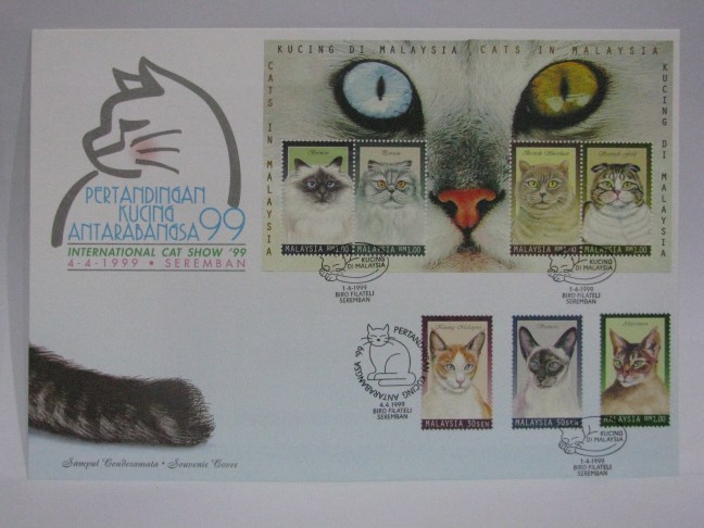 This is the special souvenir cover issued for the International Cat Show ’99 and cancelled with the Seremban cancellation as well as the Pertandingan Kucing Antarabangsa ’99 Seremban. The cover was sold along with a Commemorative Album.