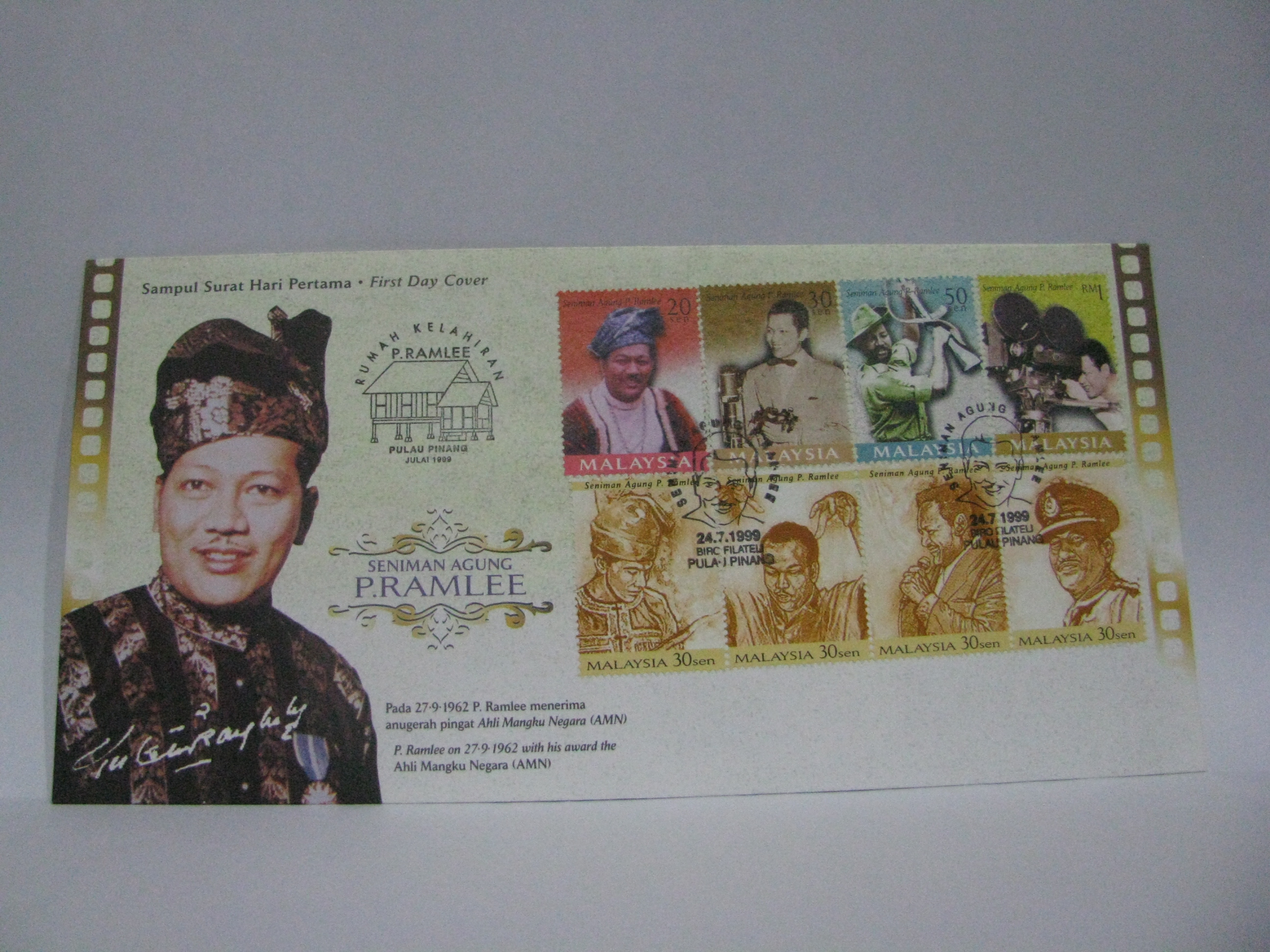 This is one of the hottest issue. A special cachet Rumah Kelahiran P. Ramlee was provided in the house where P. Ramlee was born in Penang. This cachet is only available in Penang (at the house) and also in a special Stamp Album making it rare. The queue in Penang ran for hours! All covers were cancelled in Pulau Pinang.