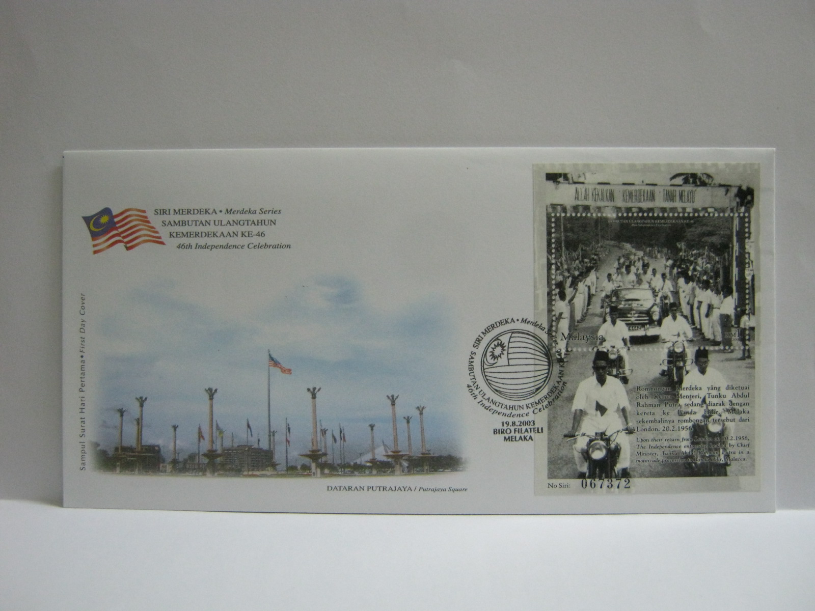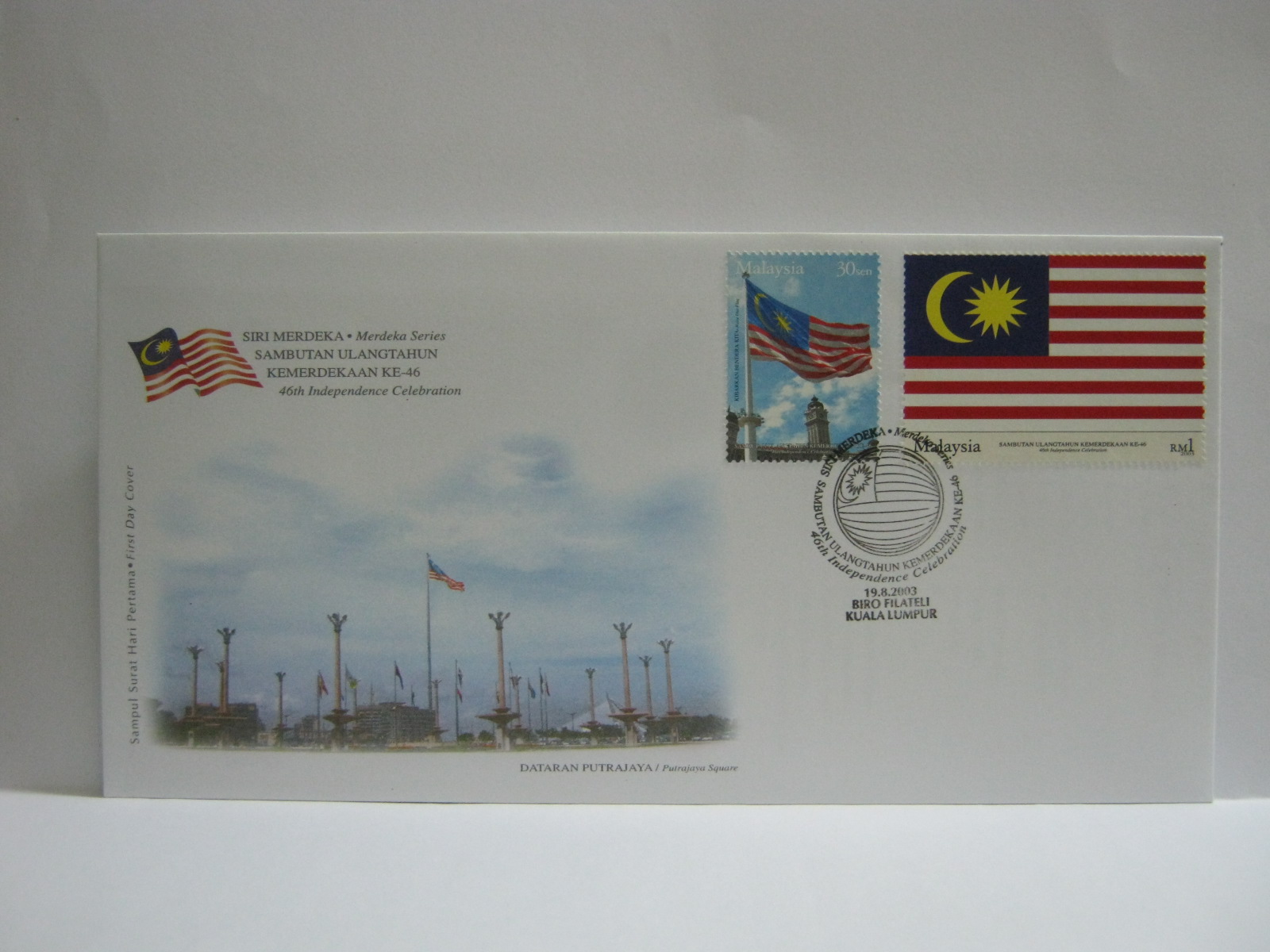 This FDC was cancelled in Putrajaya with Kuala Lumpur and Putra Trade Centre cancellations at the back along with the Kuala Lumpur Stamp Show 2003 cachet. The Kuala Lumpur Stamp Show 2003 was held in Putra World Trade Centre.