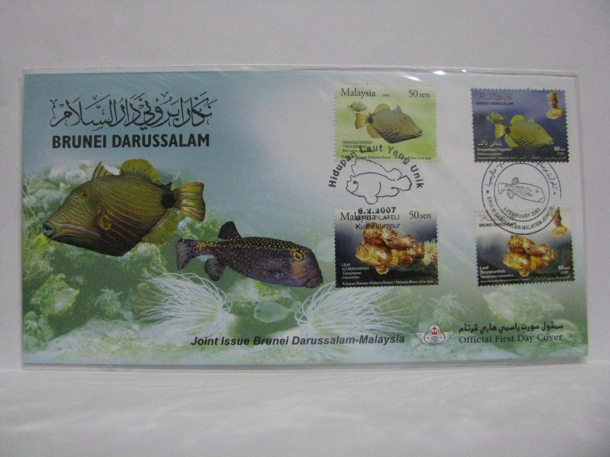 This is the Brunei Post joint issue FDC. The Brunei stamps were cancelled in Brunei Darussalam and the Malaysian stamps were cancelled in Kuala Lumpur.