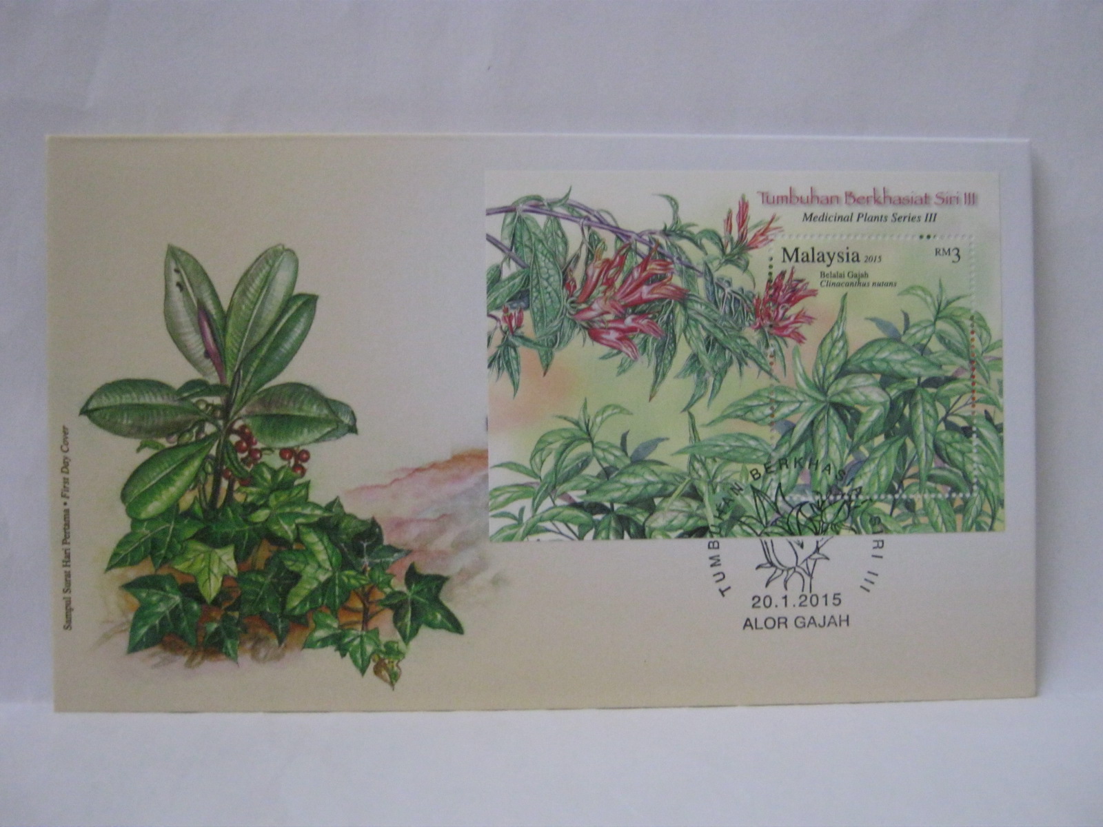 This FDC was cancelled in Jalan Laksamana, Pos Bergerak Melaka (Melaka Mobile Post) and Melaka. There is an additional red Muzium Setem Melaka (Melaka Stamp Museum).