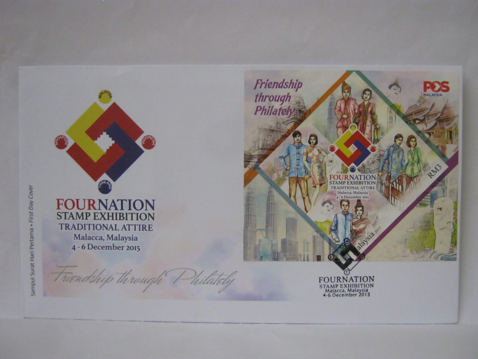 This FDC was cancelled in Kuching, Brickfields, Putrajaya, Kota Kinabalu, Kota Bharu and Kuala Lumpur.