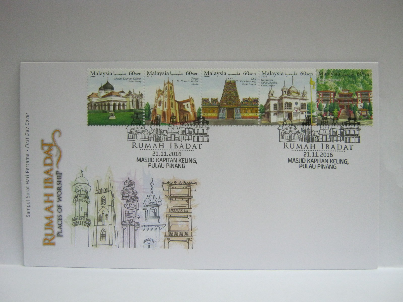 This FDC is the SODA version with a setenant set of stamps cancelled in Masjid Kapitan Keling.