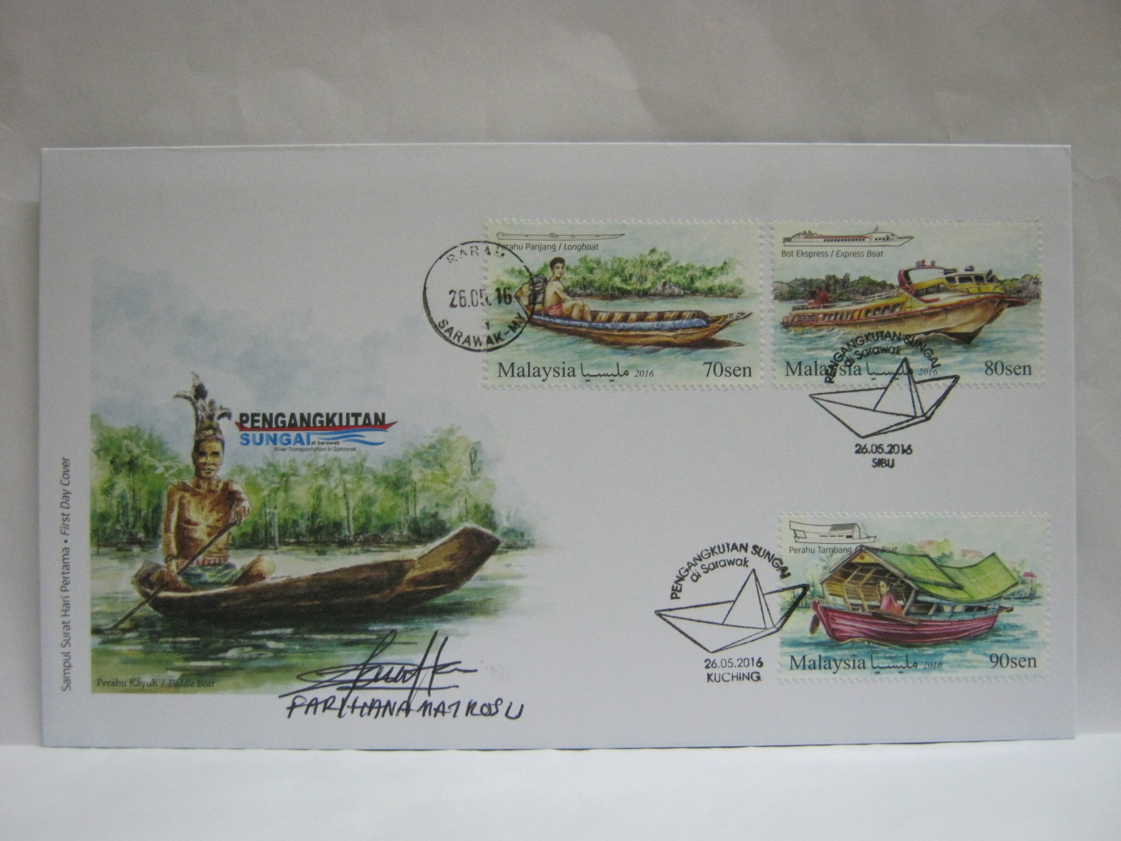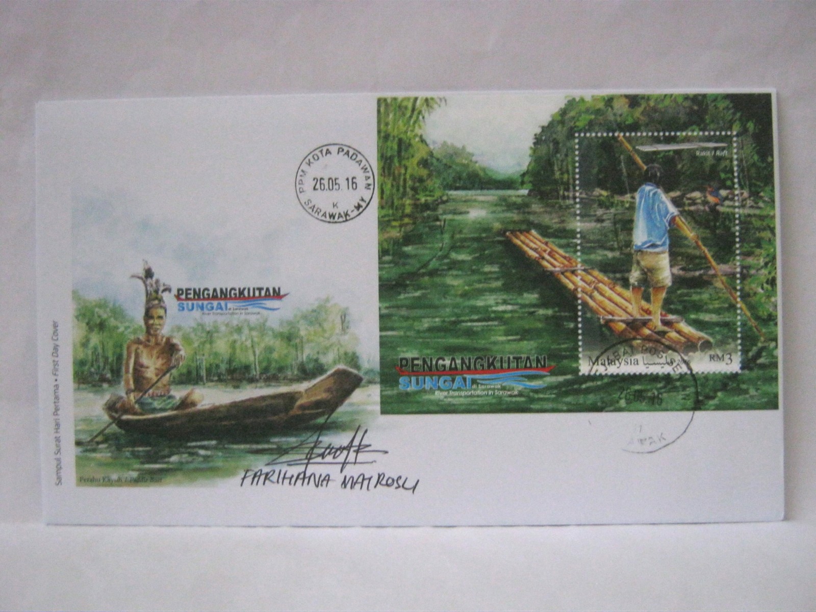 This FDC was cancelled in Baram, Sibu and Kuching and autographed by the designer, Ms Farihana Mat Rosli.
