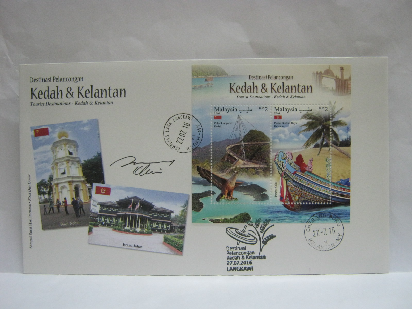This MS FDC was cancelled in Kompleks LADA Langkawi, Langkawi and Cherang Ruku. This MS FDC was also autographed by the designer, Mr KY Lim.