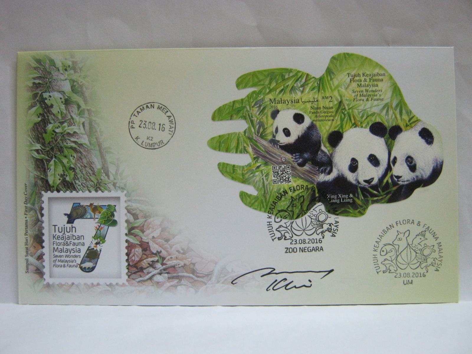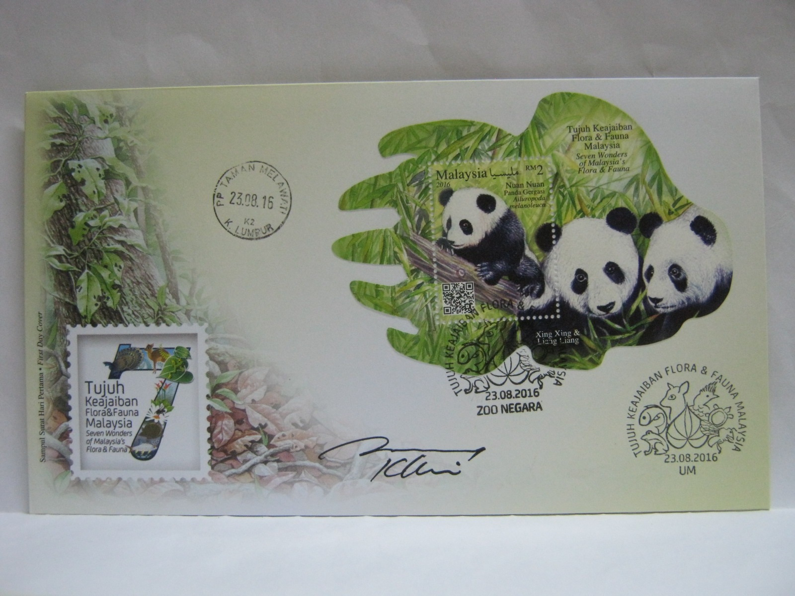 These FDCs were cancelled in Zoo Negara, Universiti Malaya and Taman Melawati and autographed by the designer, Mr KY Lim.