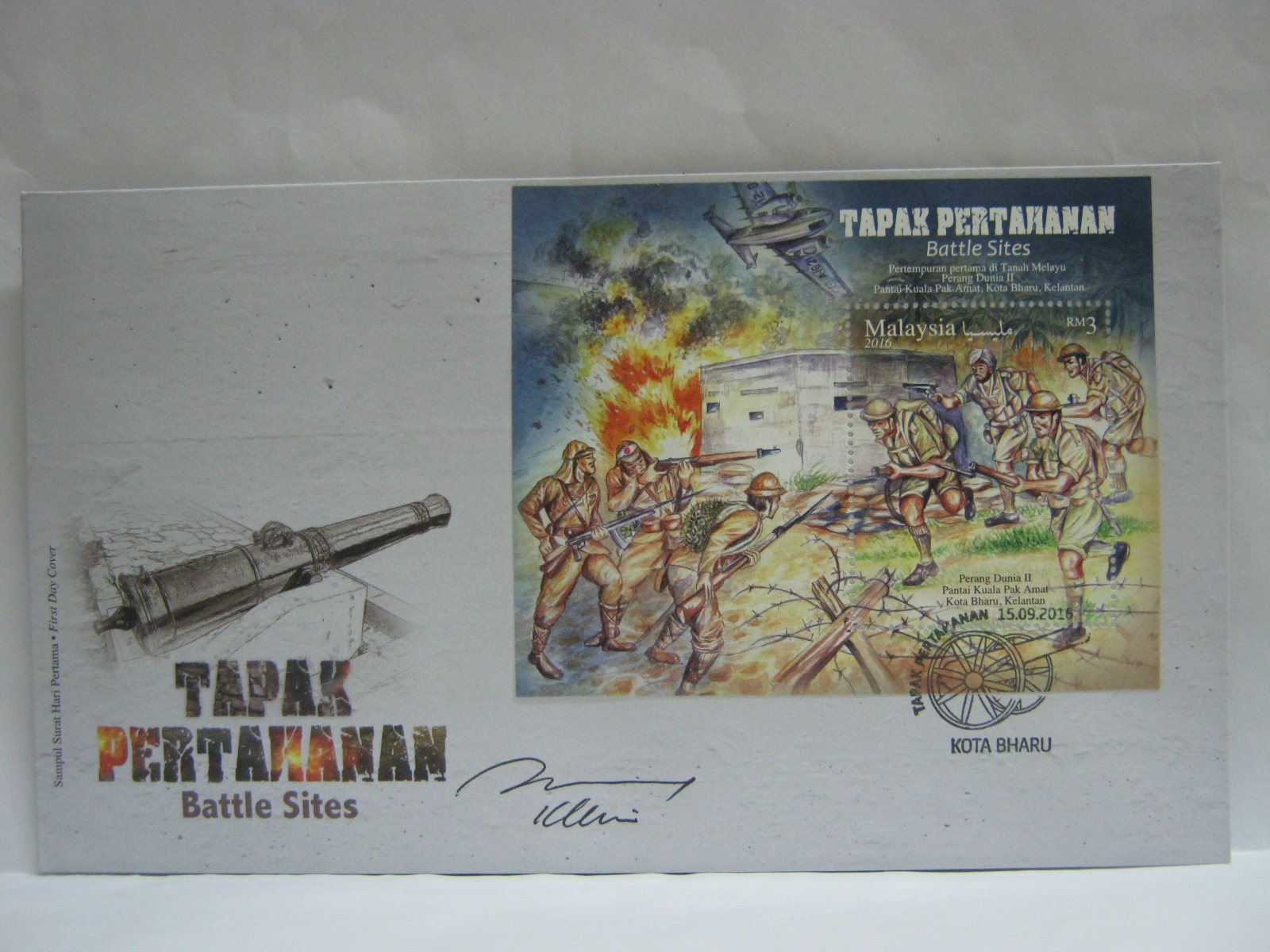 This MS FDC was cancelled in Kota Bharu and autographed by the designer, Mr KY Lim.