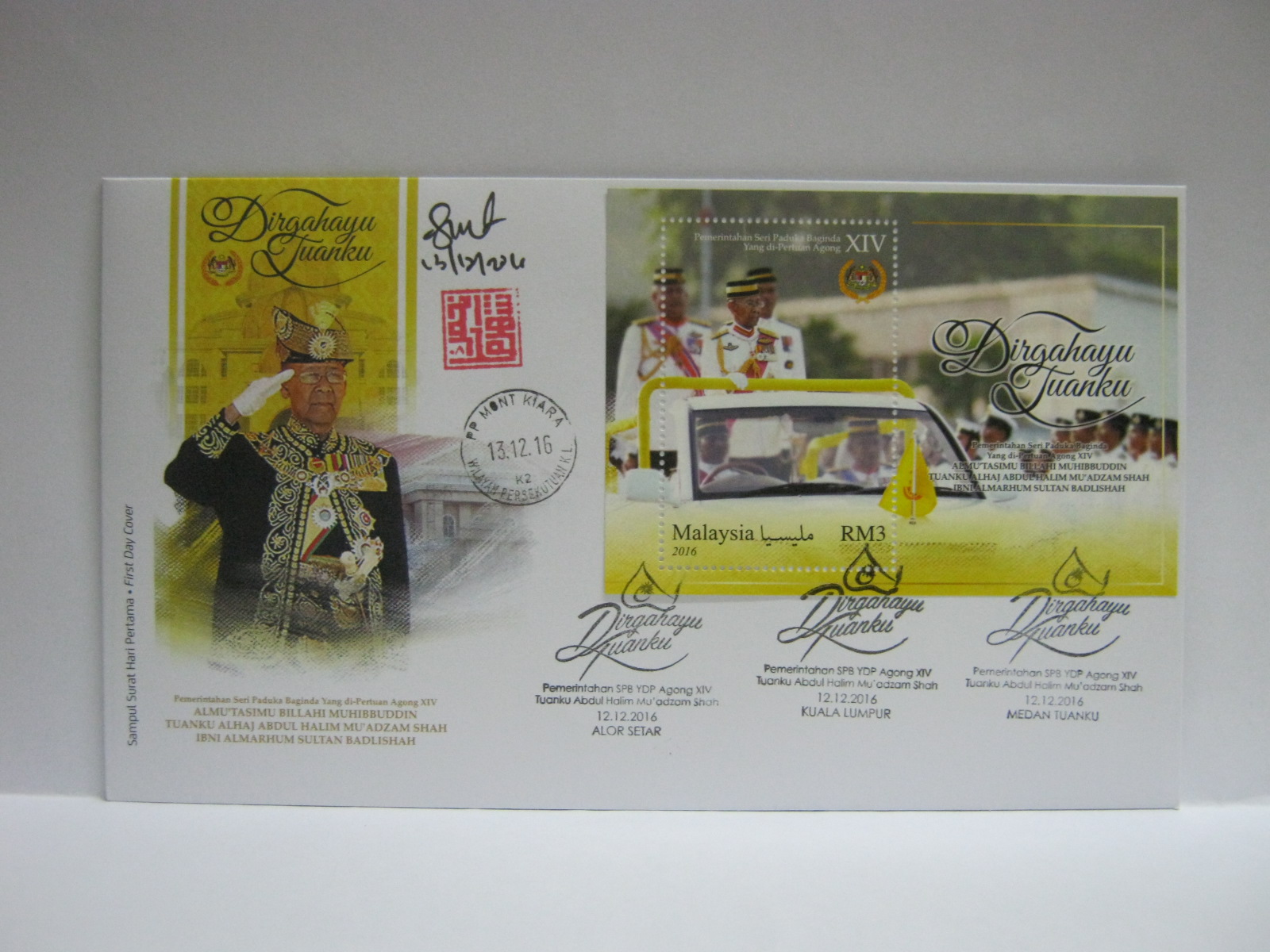 These FDCs were cancelled in Kuala Lumpur, Medan Tuanku and Mont Kiara (nearest Post Office to the Istana Negara) and Alor Setar. The FDC was autographed by the designer, Mr Shahrul Izhar.